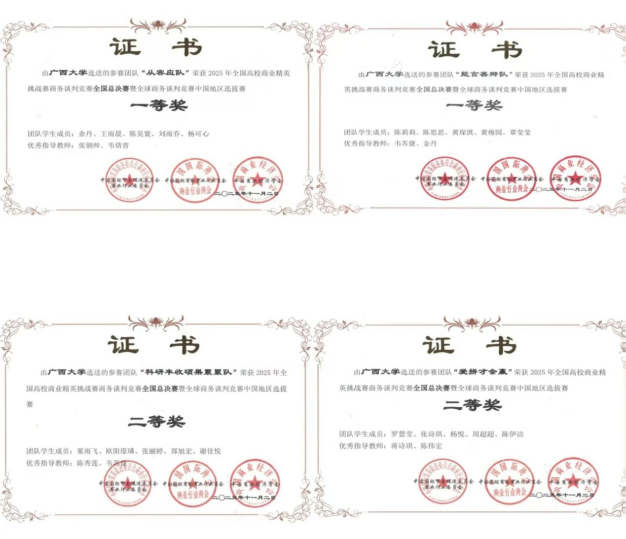 The Business Negotiation Competition of 2025 China University Business Challenge recently concluded successfully. Team of China-ASEAN School of Economics, having competed in knowledge assessments, proposal drafting, and online negotiations, demonstrated exceptional professional expertise and on-the-spot performance. They ultimately stood out among 500 teams nationwide, securing 2 national first...