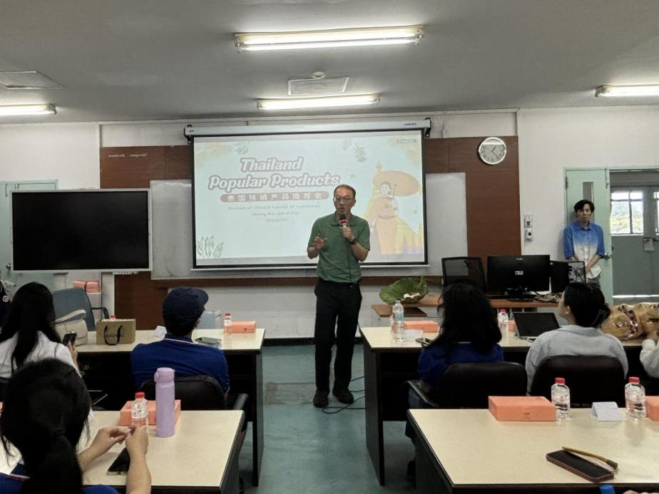 The opening remarks were delivered by Ms. Gu Mengyu from the Department of Chinese Language, Faculty of Humanities at Chiang Mai University, who warmly welcomed the Guangxi delegation and highlighted the geographic and cultural ties between the two countries. She expressed hope that the academic dialogue would help young people from both universities deepen mutual understanding and serve as a bridge of China-Thailand friendship. This was followed by Mr. Li Xiongying, Associate Dean of CAMT, who emphasized the importance of the “product + culture” collaboration model in enabling students to showcase professional competence while also exploring the cultural heritage behind local products.