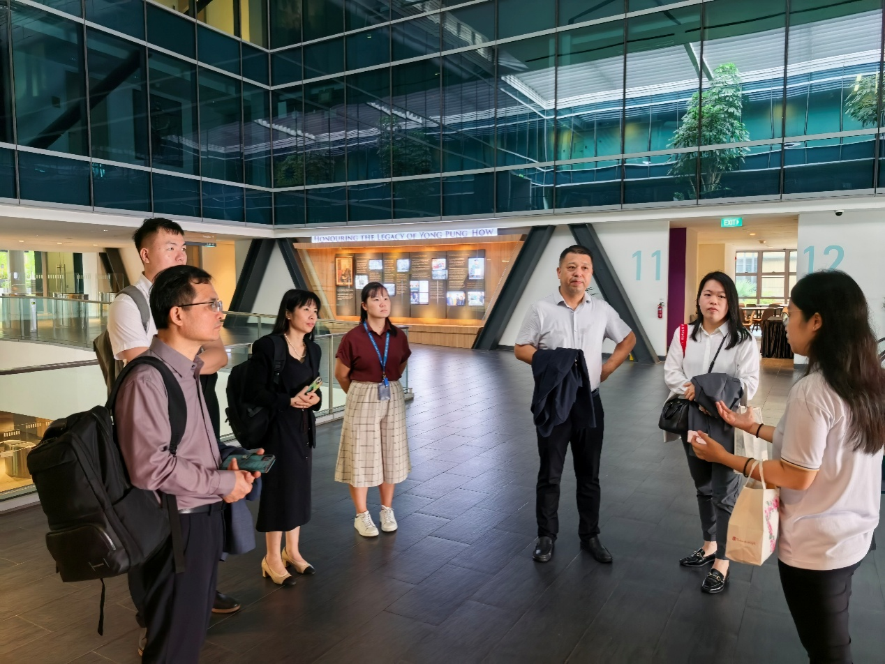 In the afternoon, the delegation visited Singapore Management University (SMU). The university staff warmly welcomed the delegation and guided them through key facilities. Through on-site visits and interactive exchanges, delegation members gained an in-depth understanding of SMU's distinctive educational features.