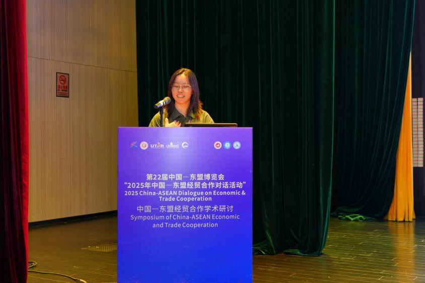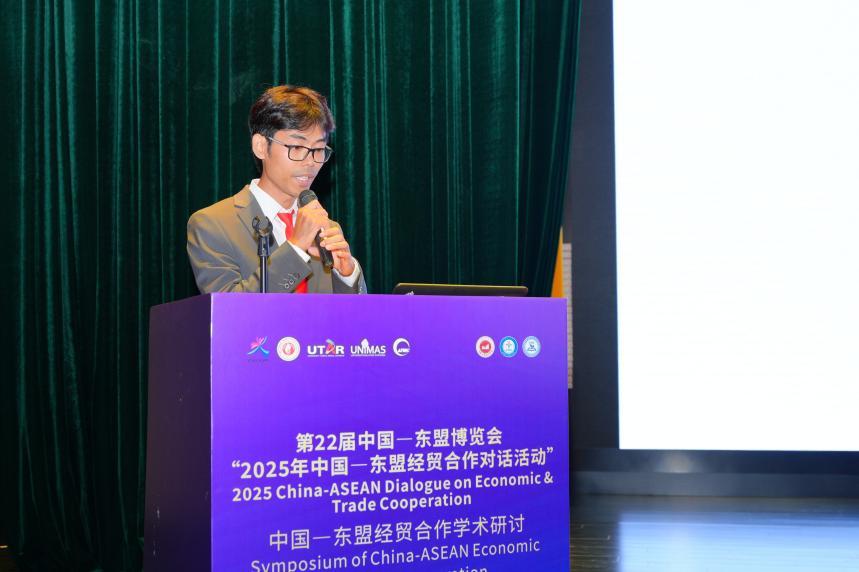 院长助理、副教授刘骞文主持了学术报告环节。交流中,多位青年学者和研究人员就亚太区域经济合作、中国—东盟跨境电商、金融科技与绿色供应链等议题发表研究成果,从多维度探讨中国与东盟在新形势下的合作路径与发展机遇。