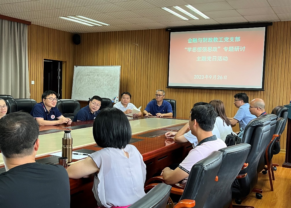 /中国-东盟金融合作学院教工金融与财政党支部在MBA大楼316会议室开展了“学思想 强思政”专题研讨主题党日活动。研讨活动由支部书记陈新建主持,学院副院长谭春枝教授、副院长梁权熙教授、支部全体党员和部分非党员教师参加了研讨活动。