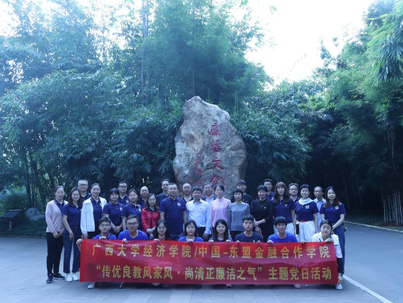 /中国-东盟金融合作学院教职工党员和学生党支部代表前往南宁市青秀山参观“中国共产党人精神谱系文化园”“廉洁文化阵地—竹园”,开展“传优良教风家风·尚清正廉洁之气”主题党日活动。学院党委书记陆善勇教授、成人漫画
