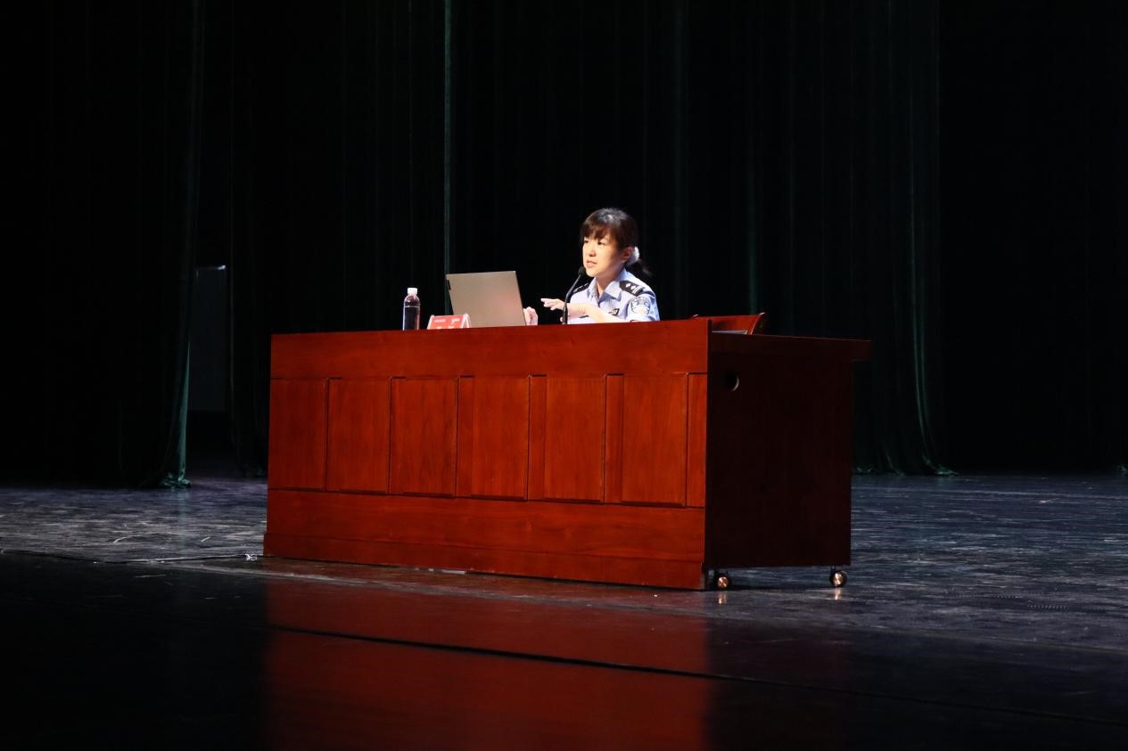 张颖指导员为新生们介绍了高发于学生群体的兼职刷单、购物退款、冒充qq好友、校园贷、冒充公检法等诈骗手段,结合生动的实际案例让同学们对诈骗行为有了更直观、深入的了解。她揭露了骗子地理、身份和技术三大伪装,提醒新生们要时刻保持警惕,防范花样繁多的诈骗形式,携手共筑无诈校园。