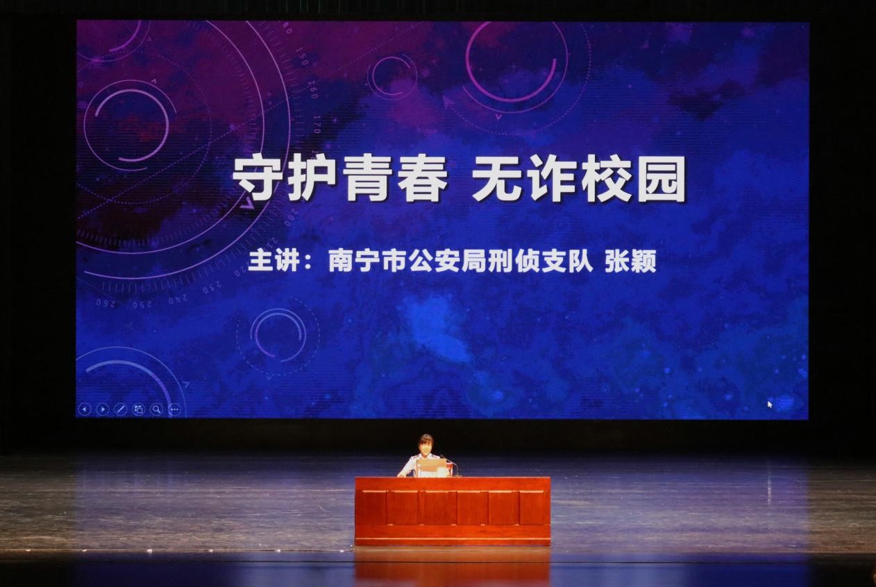 /中国-东盟金融合作学院邀请南宁市公安局刑侦支队张颖指导员为全体2022级新生开讲安全教育第一课(防范电信网络诈骗讲座)。
