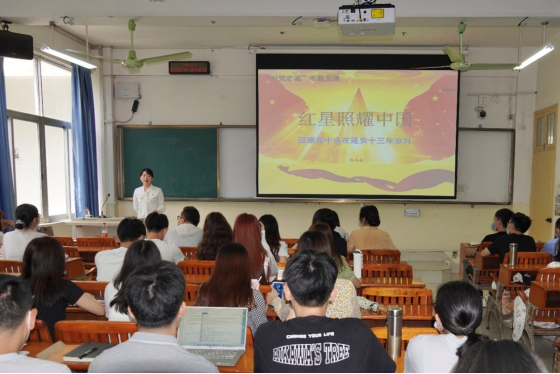 /中国-东盟金融合作学院博士生党支部、研究生2019级第三党支部和研究生2021级第一党支部的党员们齐聚东校园10B-305教室,院党委副书记、纪委书记陈卉娟为大家讲授了专题党课“红星照耀中国”。