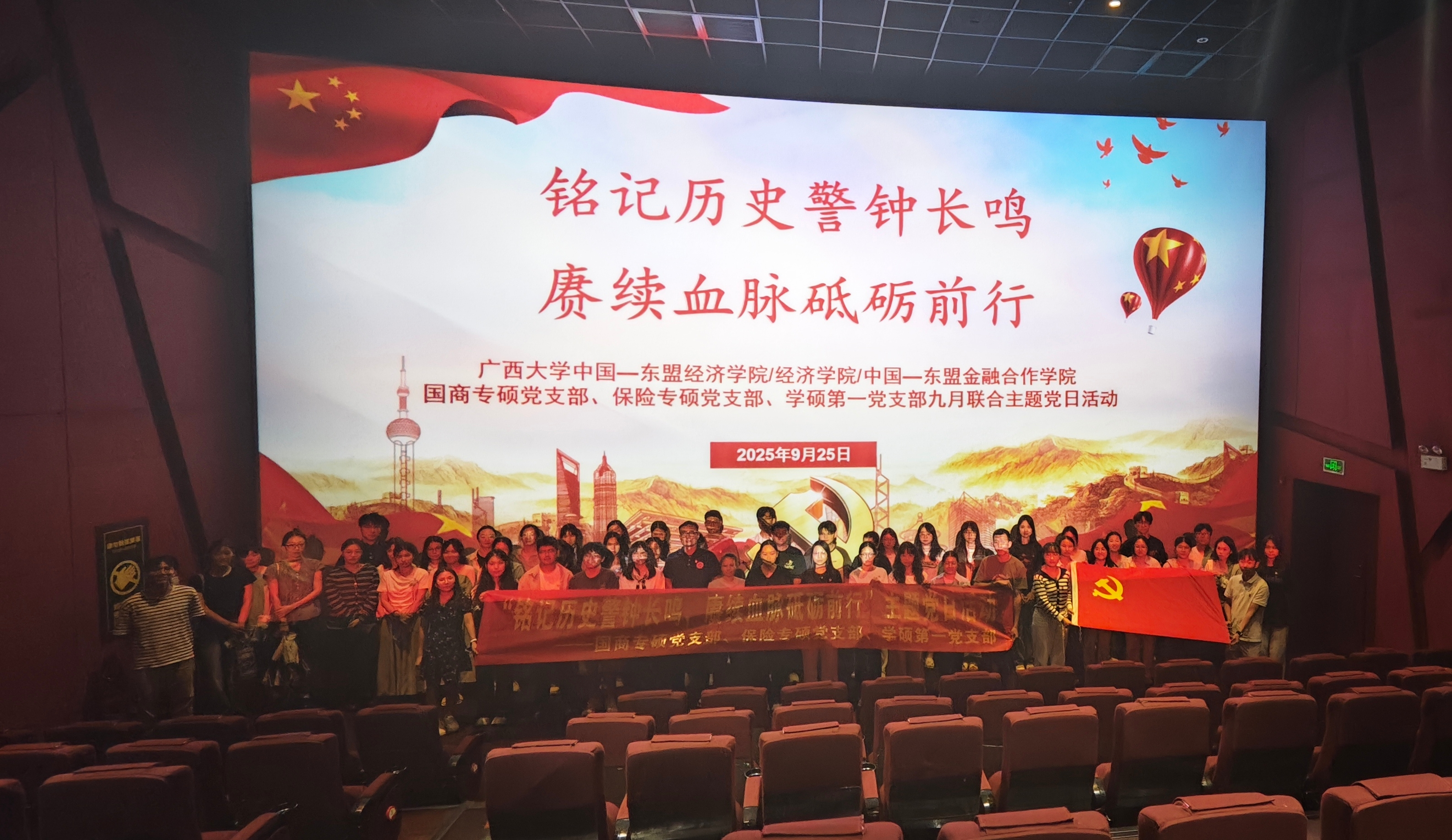 国商专硕党支部、保险专硕党支部与学硕第一党支部联合举办“铭记历史警钟长鸣,赓续血脉砥砺前行”红色观影主题党日活动,组织党员集体观看历史题材影片《731》,以影像为桥梁,回溯民族记忆,缅怀逝去同胞,凝聚前行力量。