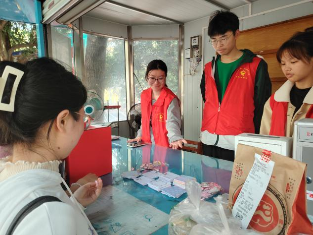 /中国—东盟金融合作学院青年志愿者协会在学生宿舍西八栋旁一站式学生社区服务点开展“学雷锋乐奉献,开盲盒遇惊喜”主题志愿服务活动,活动现场吸引了众多师生参与。
