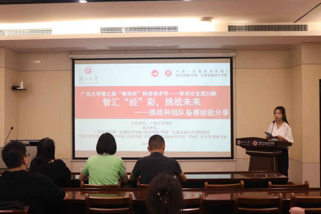 “挑战杯”各团队代表韦柳叶、刘艾、谢昌财、李海璐、罗梓瑜、周欣怡等同学聚焦“挑战杯”赛事,围绕项目选题策略、团队协作模式、阶段性成果培育等核心内容,与在场的同学们分享了备赛实战经验。