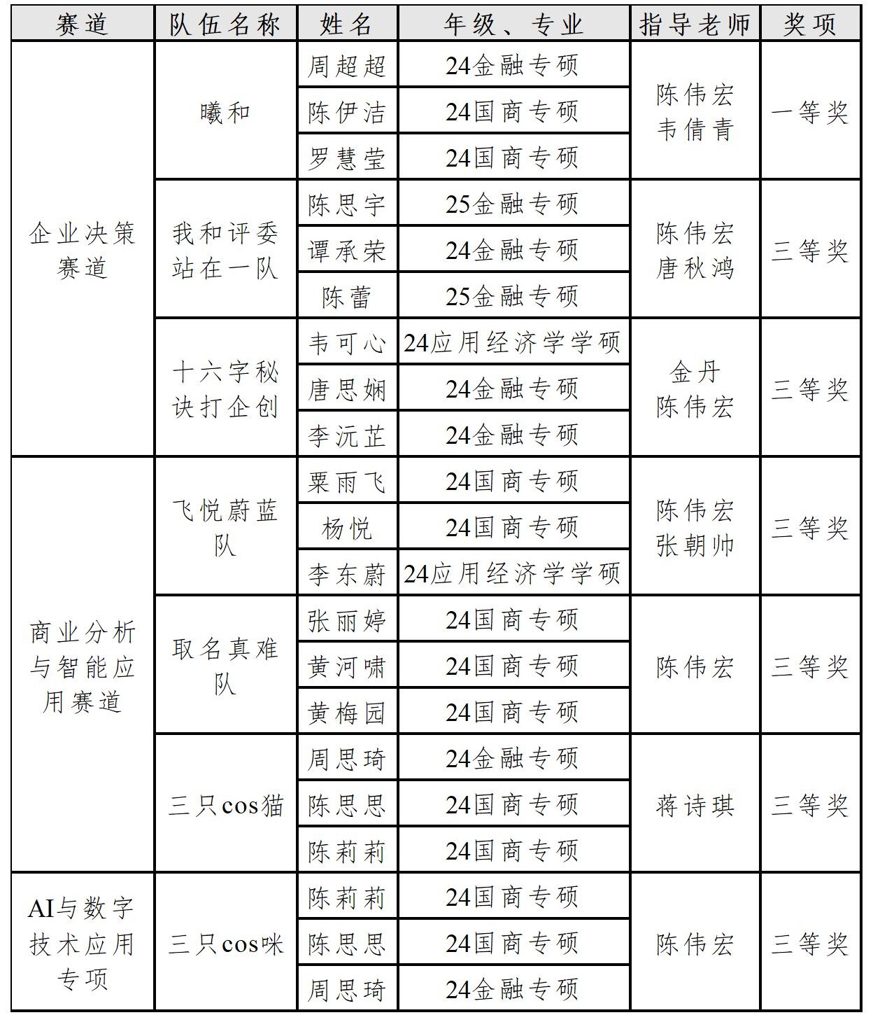 获奖队伍成员与指导老师名单