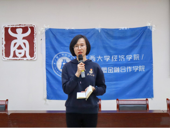 随后,学院团委书记王海希老师致辞,她首先从炎林连名称的由来向入党积极分子们介绍了中国侨联原主席、成人漫画