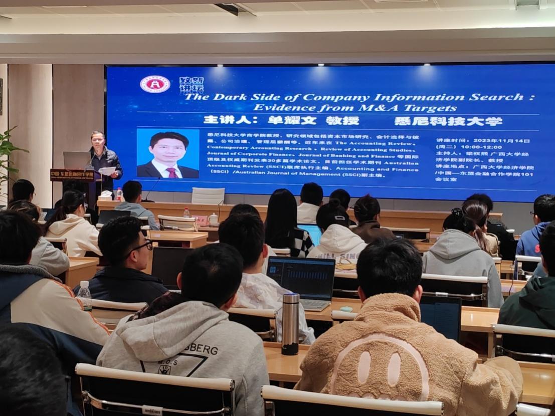 师生带来题为“The Dark Side of Company Information Search: Evidence from M&A Targets”的学术讲座。学术讲座在成人漫画