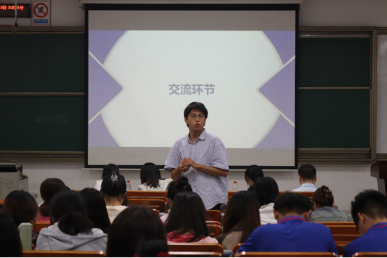 在随后的交流环节,同学们就自身疑惑向学长学姐们进行咨询提问,四位分享嘉宾耐心地解答了关于学科竞赛、学习焦虑、保研目标院校确定等方面的疑问,同学们报以掌声感谢。