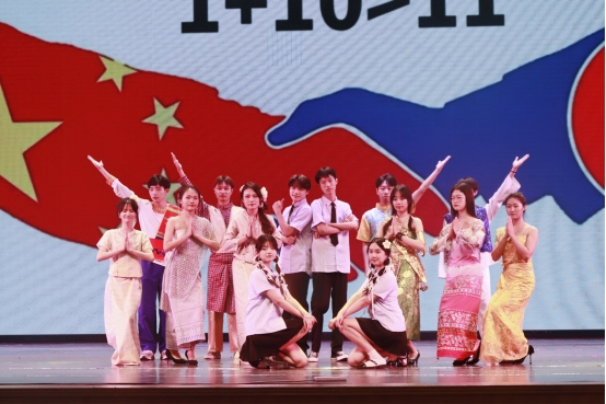 联系东盟、交流互促,青年学子与东盟各国朋友携手同行的特色和优势。舞蹈《青苹果乐园》展现了院级团学组织骨干朝气蓬勃的青春活力,院礼仪模特队带来了让人眼前一亮的走秀表演《多彩东盟》,色彩明丽的民族服饰跃然台前,展现了东盟各国独特的民族风情,最后,歌曲《一路生花》将晚会带入尾声。在悠扬的乐曲和一声声礼炮鸣响中,所有演职工作人员上台谢幕,成人漫画