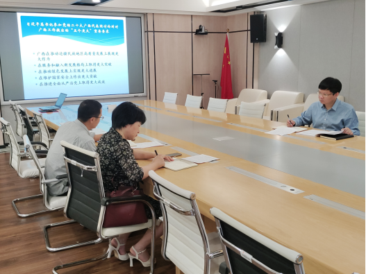 会议强调,党的十八大以来,习近平总书记两次赴广西考察,多次作出重要指示,为建设新时代中国特色社会主义壮美广西指明了方向。我们要精准、全面、系统地理解系列讲话精神的内在逻辑,深刻领会、牢牢把握“凝心聚力建设新时代中国特色社会主义壮美广西”总目标、“四个新”总要求和广西区情“四个突出特点”“三大定位”使命和“五个扎实”等一系列重要要求,结合学校和学院“双一流”建设,以学科、人才、教学、科研、社会服务五个高质量发展为抓手,师生同心齐发力,争取在新一轮学科评估中取得较好的成绩。