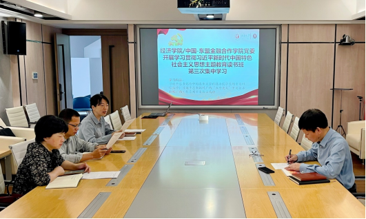 本次学习采取领学与讨论交流相结合的方式进行。会上,学院党委副书记、纪委书记陈卉娟同志带领大家学习习近平总书记给中国农业大学科技小院学生重要回信精神,副院长谭春枝同志带领大家学习习近平总书记对广西工作系列重要指示精神,副院长梁权熙同志结合学院应用经济学学科平台建设情况,就习近平总书记参加党的二十大广西代表团讨论时对广西工作提出的“五个更大”重要要求作学习分享。其他成员紧扣学习主题,联系工作实际,谈学习、谈体会、谈贯彻落实。