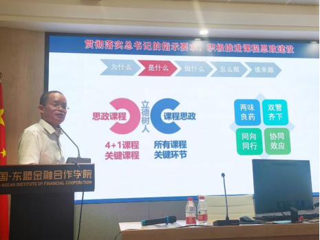 ,以《深入学习党的二十大精神 齐心做好新形势下意识形态工作》为主题开展中国-东盟金融课程思政教育培训专题讲座。