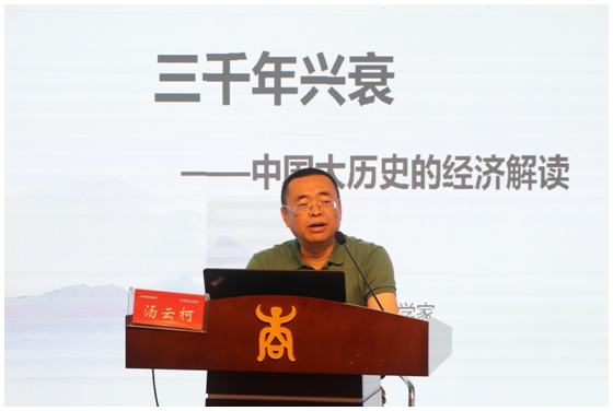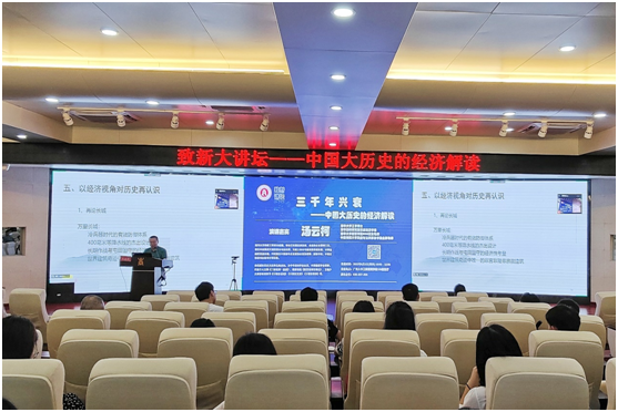 汤云柯博士长期从事投资、金融和企业管理领域的研究,他以自己独特的视角解读经济在历史发展中的作用,用经济学理论解析中国历史,他从“什么是兴衰的根源”这一问题切入,从夏商周到春秋战国,再到明末清初,讲述历数中国历史上的战争与和平、繁荣与衰退,详细解读了中国经济史的变迁,并很有创意地提出“吃货的历史观”,指出从古至今粮食问题始终是一个国家进行一切经济活动的基础,粮食问题至今依然是世界各国所面临的重大问题之一。最后,汤博士提出了 “盛世的思考”论题作为开放式的结尾,引发师生们对主题更进一步的深思。