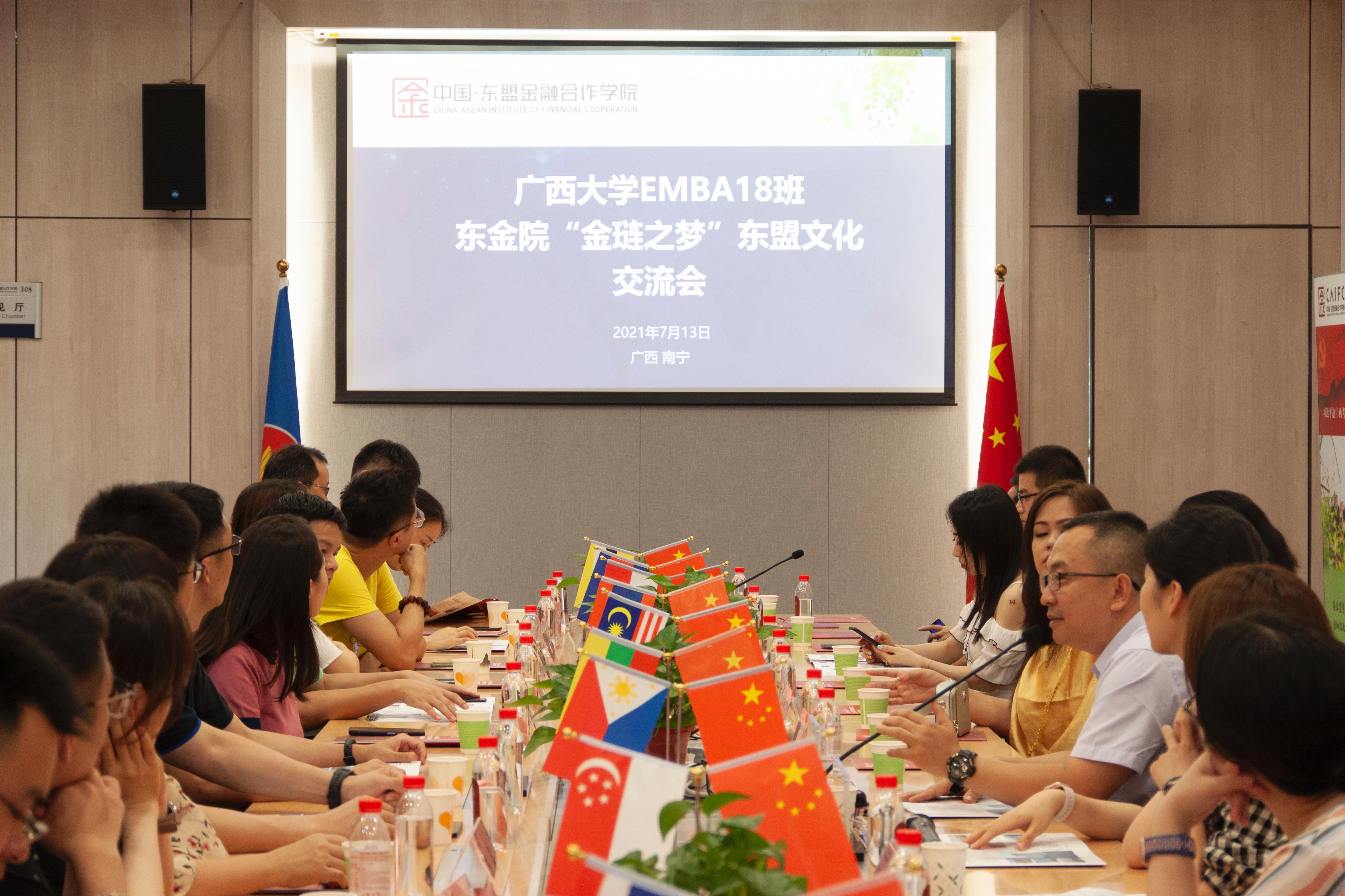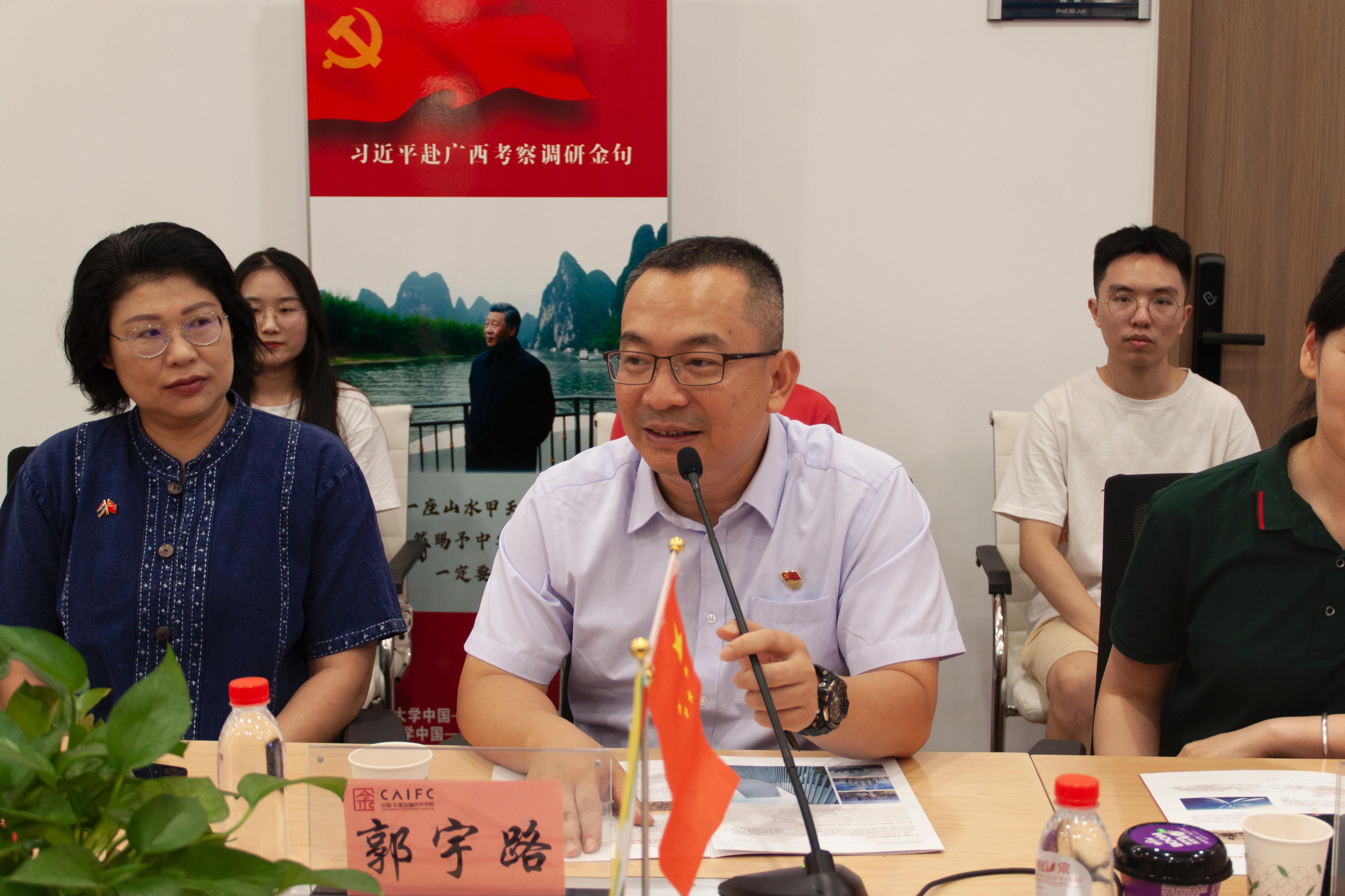 郭宇路副书记表示,学院致力于成为中国—东盟金融开放合作的先锋,目前已经开设东盟小语种培训班,致力培养具有东盟语言文化基础和金融知识的复合型人才,并对学院与EMBA学员们进一步加深交流、建立起良好关系表达了深切的期盼。