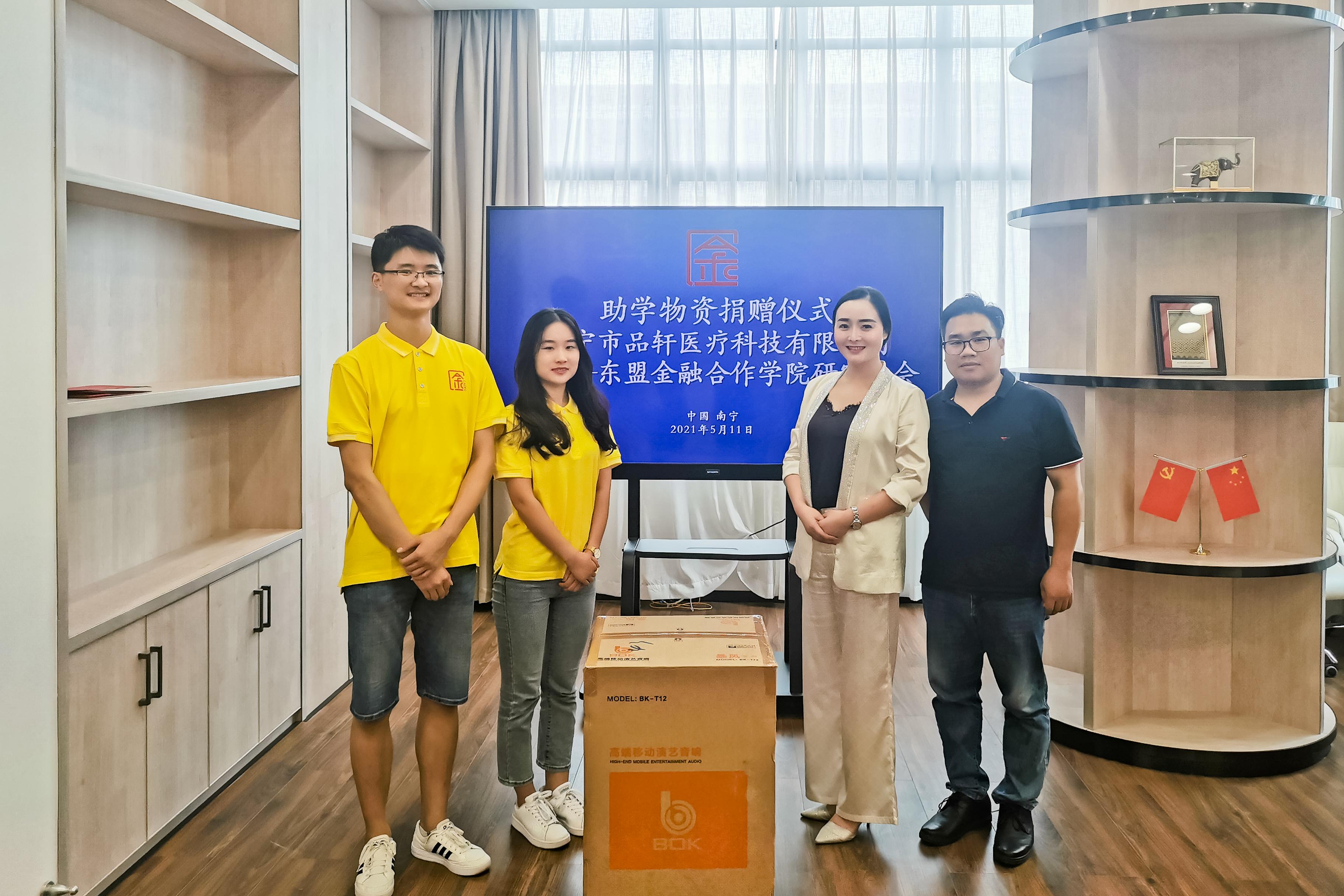 郭宇路副书记对南宁品轩医疗科技有限公司给予学院研究生会的大力支持表示衷心感谢。捐赠仪式后,郭书记与南宁品轩医疗科技有限公司负责人张丽媛、王万春座谈交流,双方就今后的东盟市场开拓与合作前景进行了深入沟通。