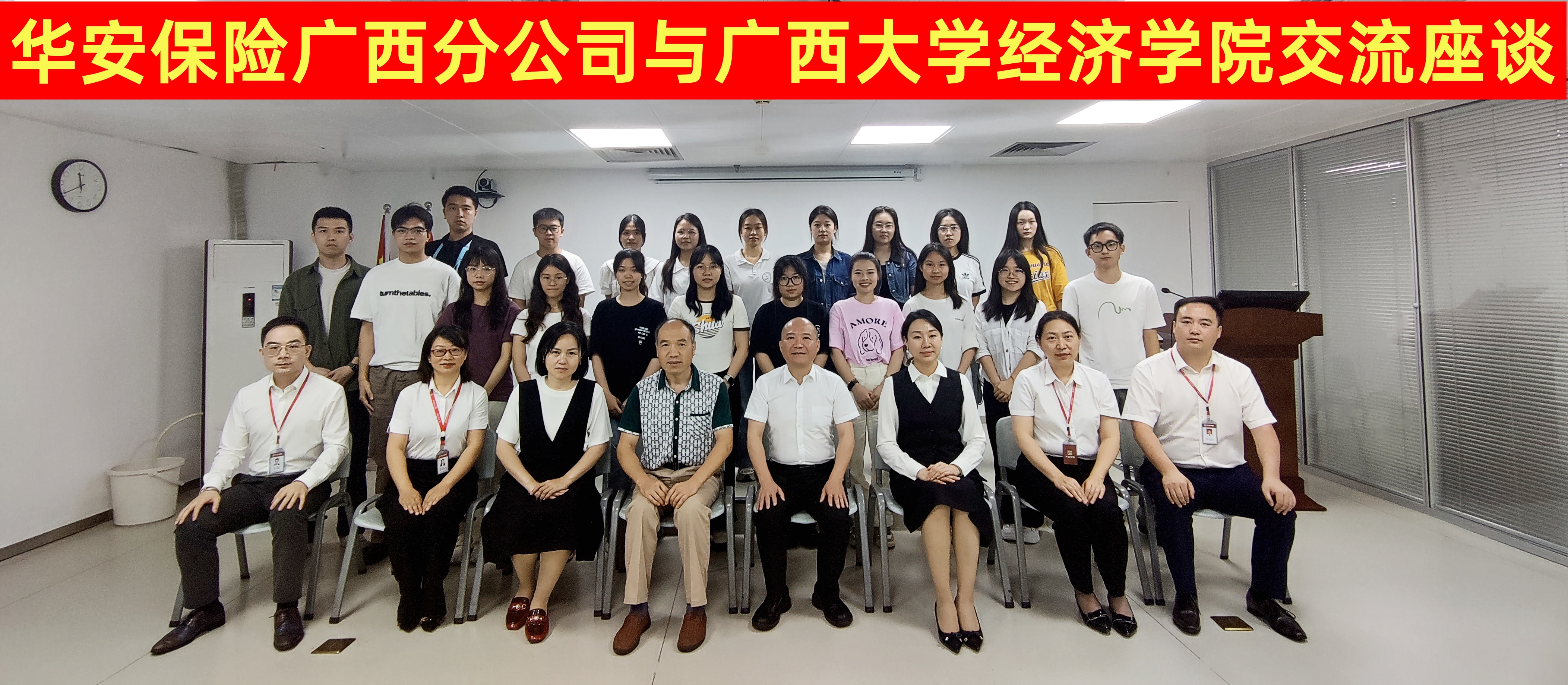 保险专硕的师资队伍、学生培养、科研进展等方面做了基本介绍。他还表示,学院与华安财险广西分公司一直保持良好合作关系,有着广阔的合作空间,希望通过这次交流,继续深化校企合作,为推动广西经济高质量发展作出贡献。