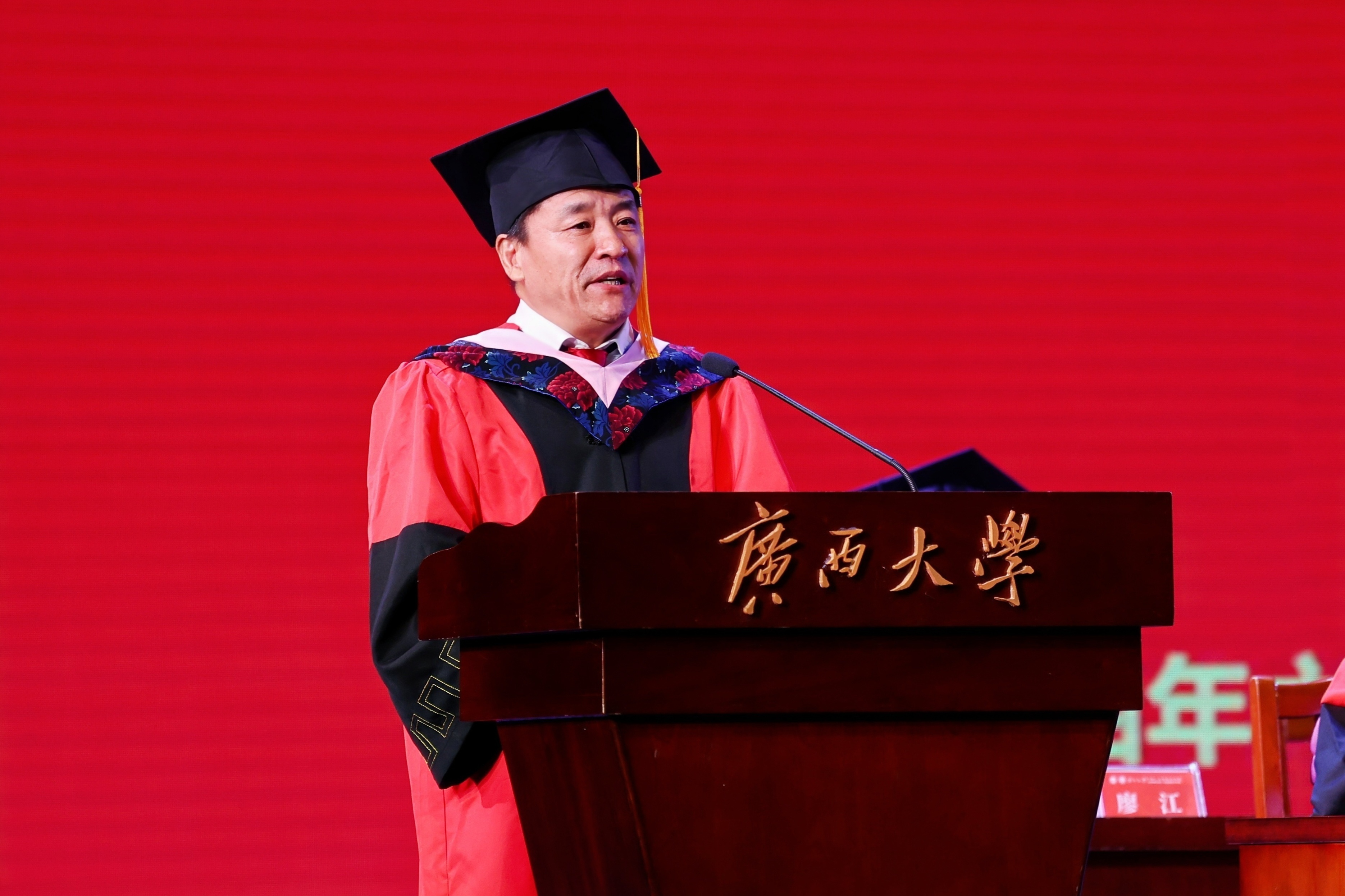 获得“2024届广西壮族自治区普通高等教育优秀毕业生”称号的毕业生名单;罗诚书记和李光辉院长为优秀毕业生代表颁发毕业证书、赠送毕业礼物。