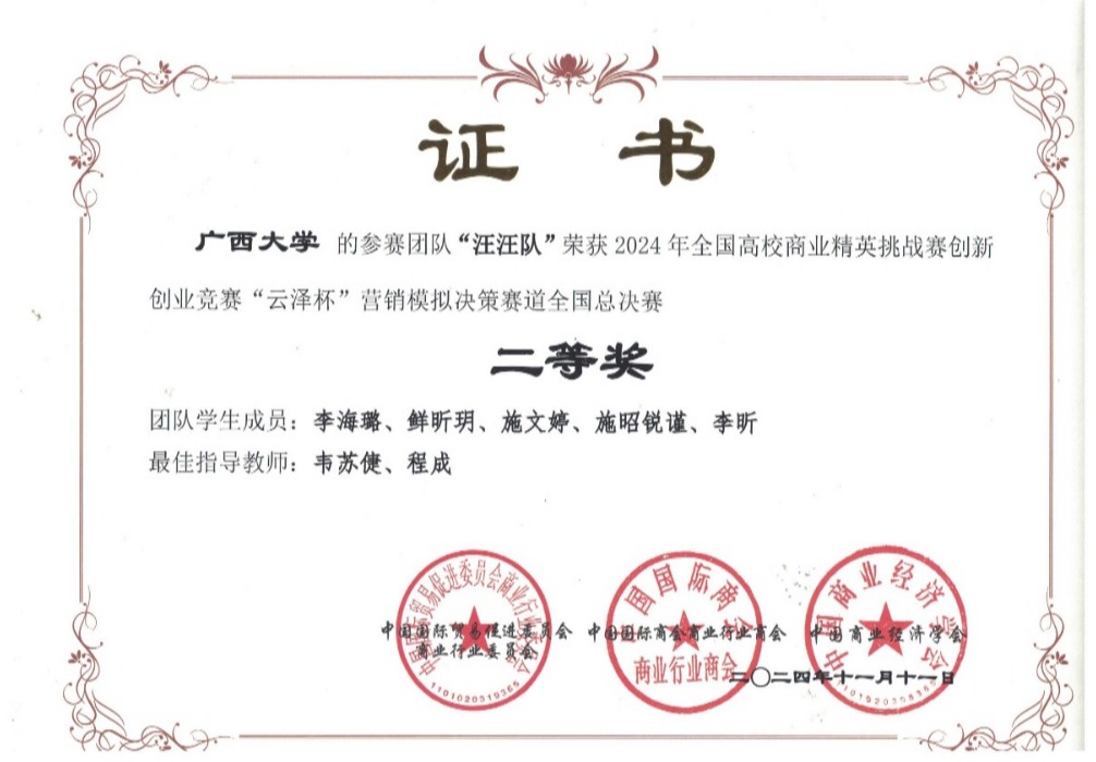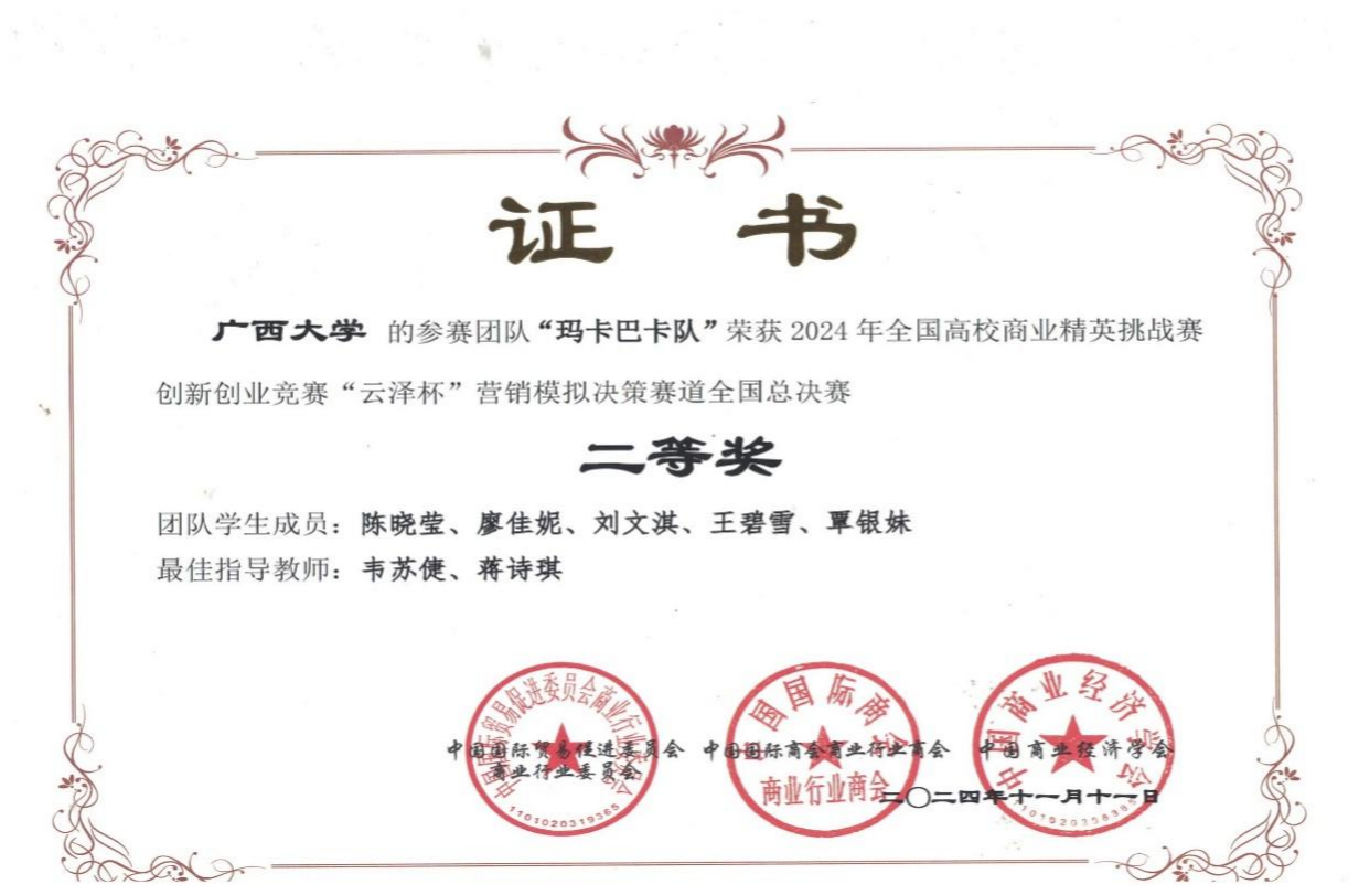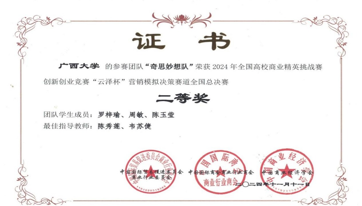 全国高校商业精英挑战赛创新创业竞赛“云泽杯”营销模拟决策大赛是由中国国际贸易促进委员会商业行业委员会、中国国际商会商业行业商会和中国商业经济学会共同主办的国家级学科竞赛活动。该竞赛通过软件模拟的形式,以实际商业环境为背景,以真实商业案例为基础,让参赛团队在模拟真实商业环境中进行决策和操作,将课堂上学到的理论知识应用到实际操作中,通过模拟经营,深入了解商业行业的运作规律和市场需求。此次竞赛不仅是一次商业模拟的较量,更是一次创新思维、实践能力与责任担当的展示。赛场上,同学们发挥主观能动性,挖掘商机,群策群力,谨慎决策,展现了青年学子团结拼搏的精神。大赛成果充分彰显了学院在人才培养方面的显著成效,同时也体现了学院以赛促学,以学强赛、赛教融合的育人模式和人才培养目标。