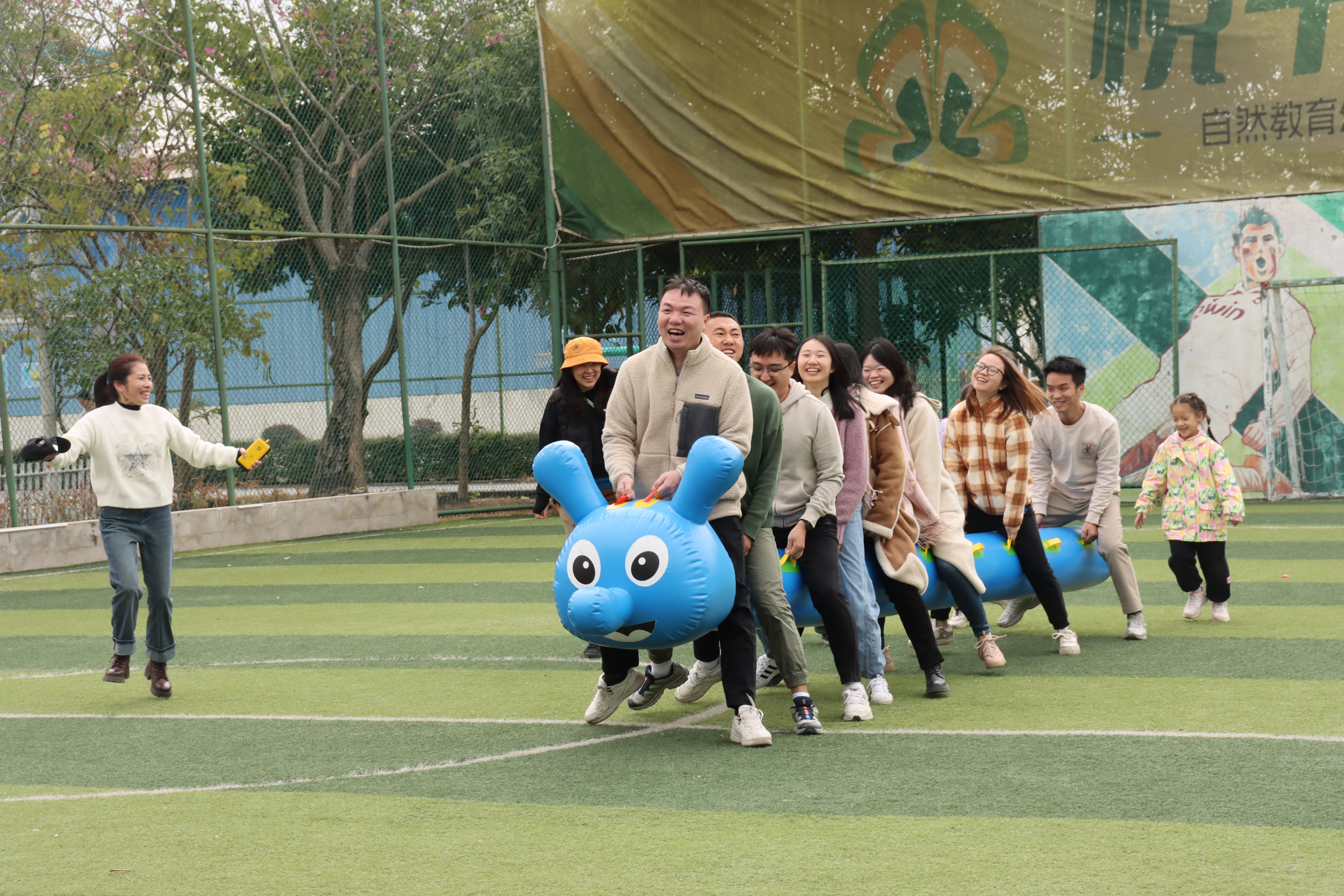 竞游环节活动内容丰富多样,竞游环节由学院分工会副主席陈新建教授主持。教职工们分成若干小组,在拔河、击鼓颠球、球行万里、毛毛虫等趣味项目中展开激烈角逐,大家齐心协力、相互配合,将活动氛围一次次地推向了高潮,教职工们在欢声笑语中尽情享受着团队合作带来的乐趣。