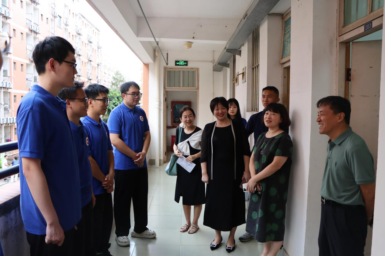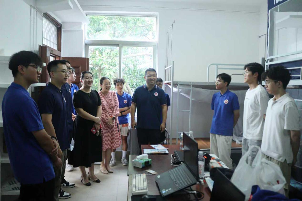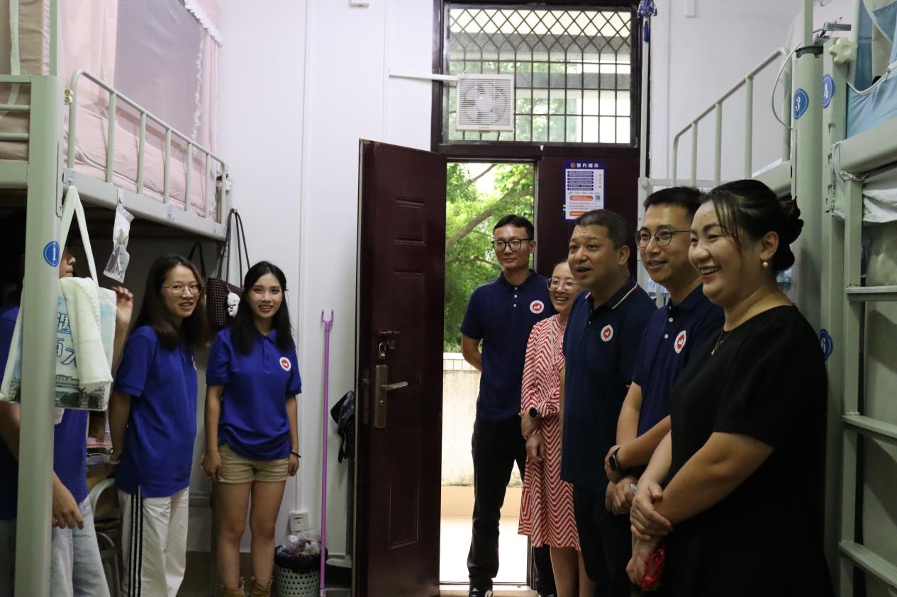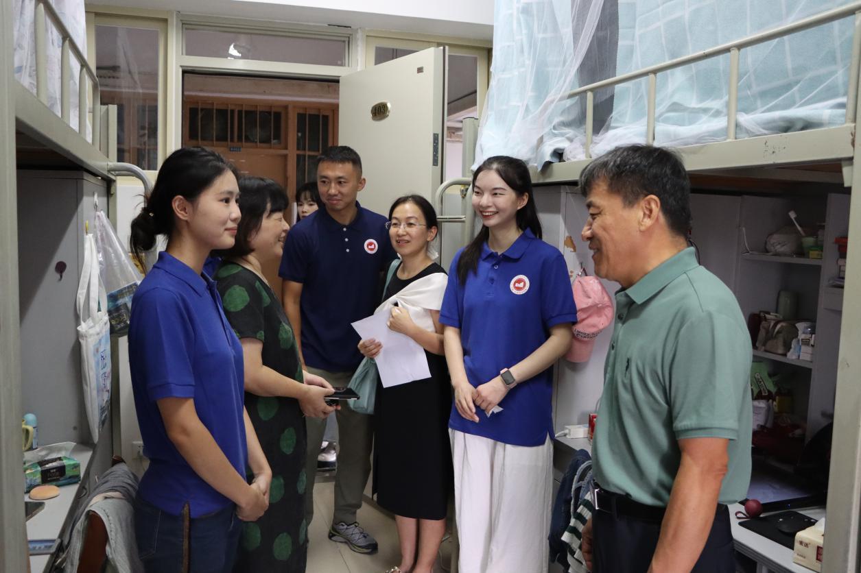 走访过程中,学院领导细致查看每一间宿舍的设施条件与居住环境,关切询问同学们的生活适应情况,耐心倾听初入校园的所思所感。领导老师们与新生亲切交谈,从家乡风土到入校体验,从学业规划到自我成长,言语间尽显关怀。他们勉励同学们要尽快适应新角色、融入集体生活,与室友彼此扶持、共同进步,既要专注学业、夯实专业基础,也要勇于尝试、积极参与各类实践与社团活动,在多元平台上拓展视野、锤炼综合能力。