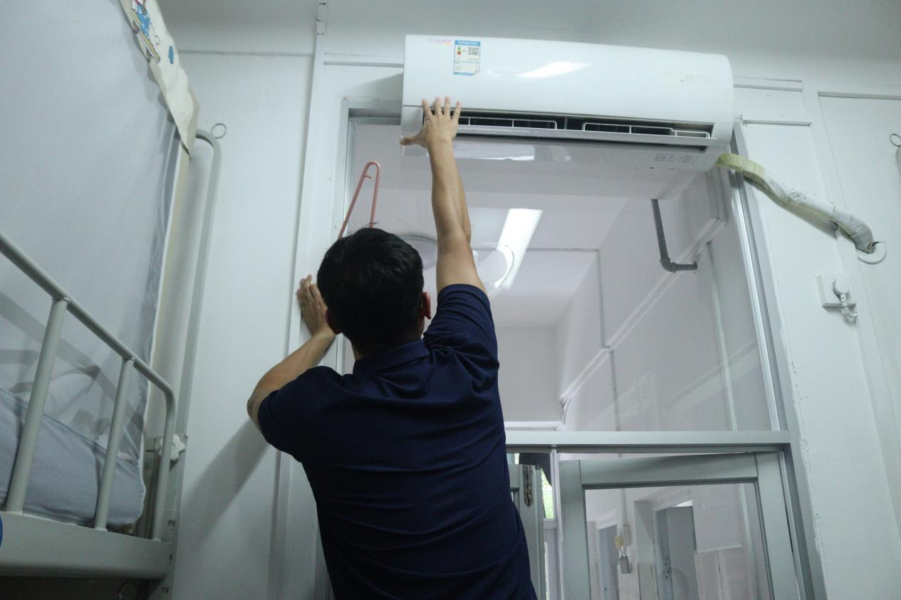 走访期间,某宿舍空调出现故障,郭霖刚老师主动上前、亲手调试,迅速解决问题,并暖心嘱咐同学们:“生活上有任何困难,一定要及时向学院反映,我们一直都在。”这一务实细微的举动,让在场新生深切感受到学院高效务实的作风和以生为本的关怀。