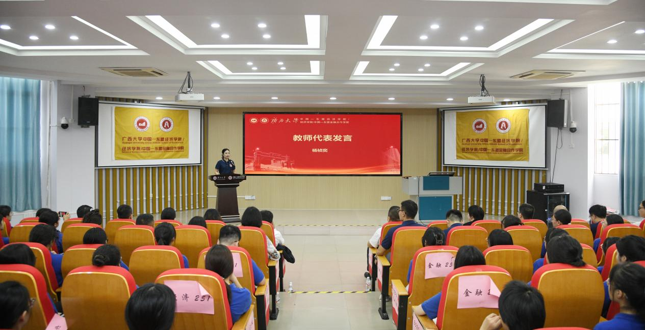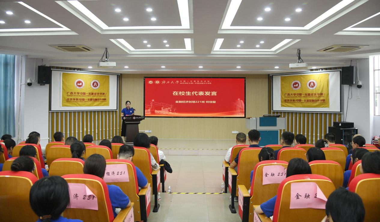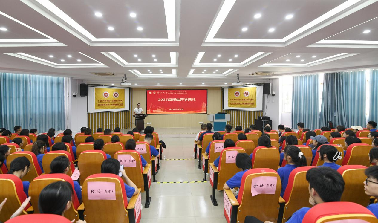 院长李光辉代表学院向全体新生致以热烈欢迎,并回顾了学院自1937年创立以来的发展历程与当前以“应用经济学”“区域国别学”为核心的学科布局。他鼓励新生胸怀“国之大者”,将学术追求融入国家发展与区域合作的大局中,扎根真实问题,服务战略需求。同时,他强调应锤炼跨界本领,主动打破学科与文化界限,在东盟研究、边疆经济等特色领域开拓创新。他还希望同学们恪守学术初心,弘扬科学精神,做到诚信严谨、勇于批判、脚踏实地,在持之以恒的探索中成就卓越。最后,他表示学院始终秉承“勤恳朴诚、厚学致新”的校训,致力于培养具有国际视野的高层次人才,并祝愿新生在未来的学习生活中收获成长,学有所成。
