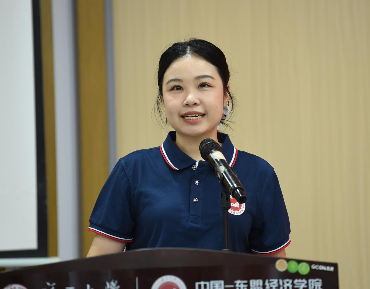 学院研究生会主席团成员、2024级金融专硕的李沅芷以“扎根、破界、坚守”为关键词,为新生们提出了三点建议:她鼓励新生深入中国—东盟合作一线,厚植家国情怀;善用国际化平台,拓展全球视野;保持热爱与信念,锤炼研究能力和职业品格。最后,她也祝愿新生们学有所成、青春无悔。