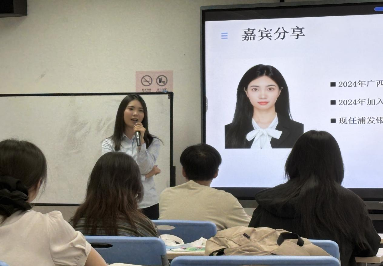 尤为打动人心的是来自分行内部的校友分享环节。已成长为业务骨干的学长学姐们,以亲身经历娓娓道来,讲述了他们在浦发银行从青涩学子到职场达人的蜕变历程。他们特别分享了银行针对新员工实施的“导师带徒”制度、系统化的轮岗实践与专项培训,这些充满人文关怀的培养模式,为初入职场的新人提供了坚实的成长阶梯,消除了学子们对职业起航的迷茫与顾虑。