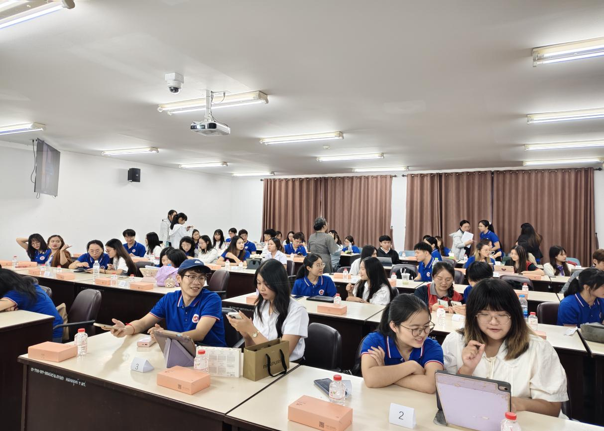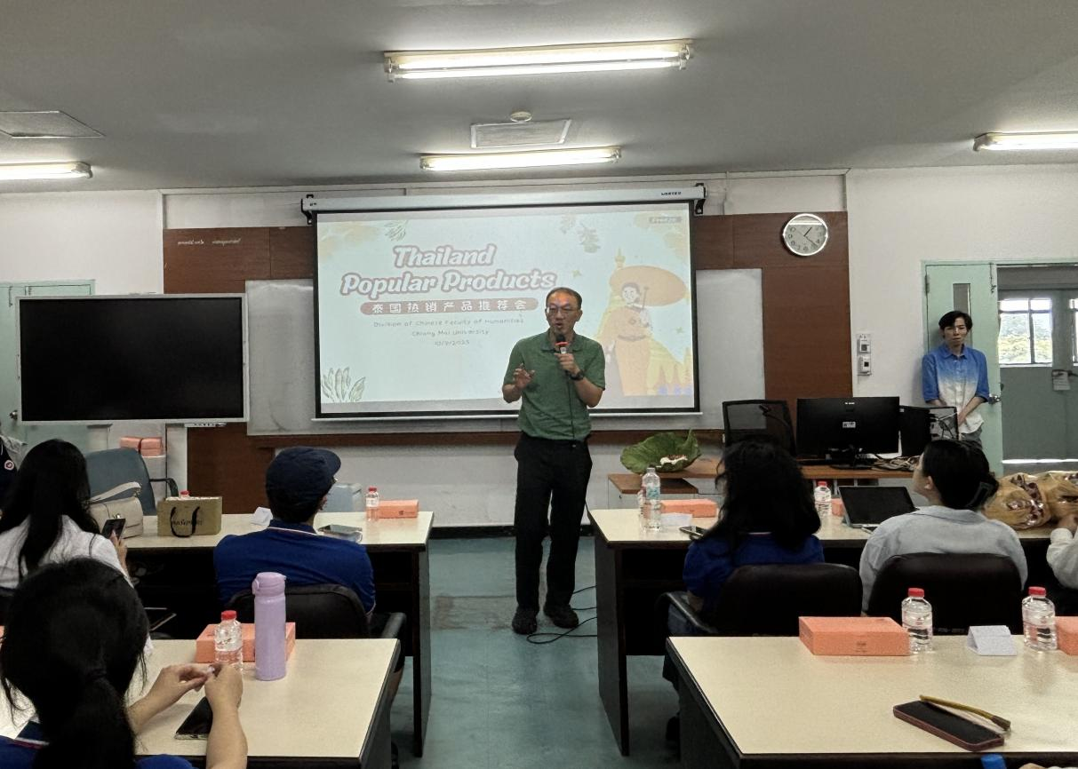 的交流访学团,并说:“中泰两国地缘相近、文化相通,我们希望通过此次交流让两校青年在学术碰撞中增进理解,成为中泰友好传承的桥梁。”紧接着,清迈大学CAMT数字学院副院长李雄鹰老师强调:“我们的‘产品+文化’协作模式,将帮助中泰青年在展示专业能力的同时,深入挖掘产品背后的文化内涵,推动两校合作向更广阔的领域拓展。”