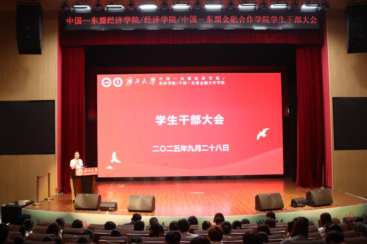 在大学生活动中心小剧场隆重举行2025年秋季学期学生干部大会。学院党委副书记刘梦娟、团委书记王海希及学工组辅导员老师出席,各学生组织骨干与班级代表共200余人参会,共同见证新老交接、凝聚共识的重要时刻。