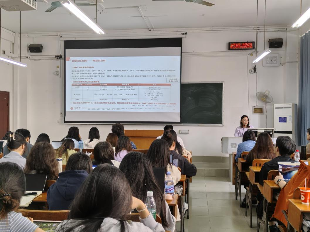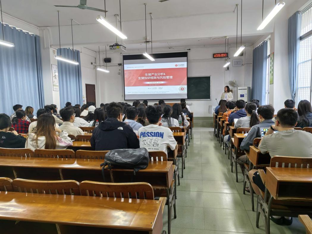 ,在第三教学楼405教室为全体25级金融专硕同学作主题为“生猪产业投研分析与风险管理”的专题讲座。