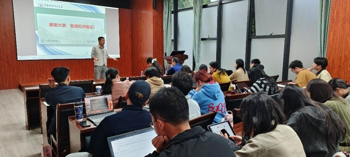 刘主光教授上台总结,高度肯定了本次讲座的实用价值,认为内容既为师生提供了案例开发的实操指南,也为专业教学与科研的深化指明了方向,并代表学院再次向曹亮教授的倾囊相授致以诚挚感谢。