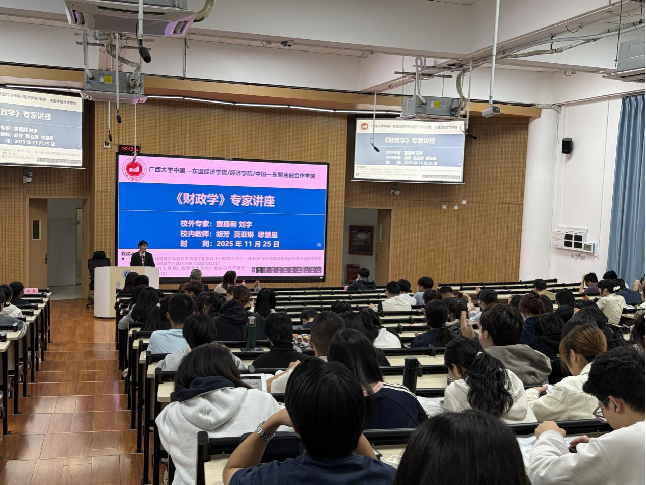 中国—东盟金融经贸创培241班、国际经济与贸易241班、经济学241班、金融学241班和金融学242班本科生共230余人参加讲座。