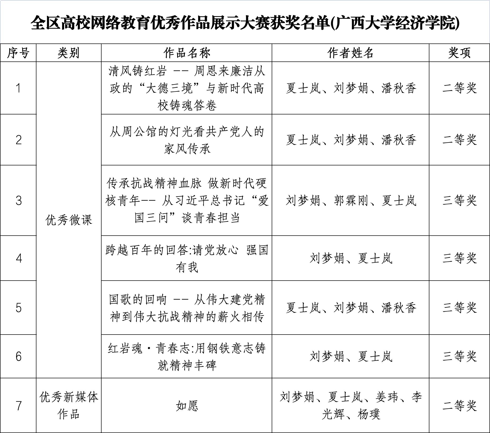 全区高校网络教育优秀作品展示大赛获奖名单