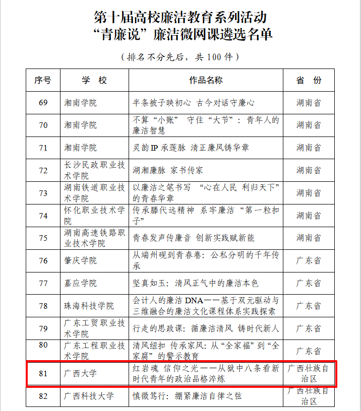 党委副书记刘梦娟老师指导的2项廉洁文化作品成功入选,分别斩获国家级优秀作品奖项。刘梦娟老师指导的《红岩魂 信仰之光——从狱中八条看新时代青年的政治品格淬炼》获评“青廉说”廉洁微网课优秀作品;刘梦娟老师参与指导的《周恩来廉洁故事大讲堂——“大德三境”与家风传承》获评“树廉风”廉洁文化课优秀作品。