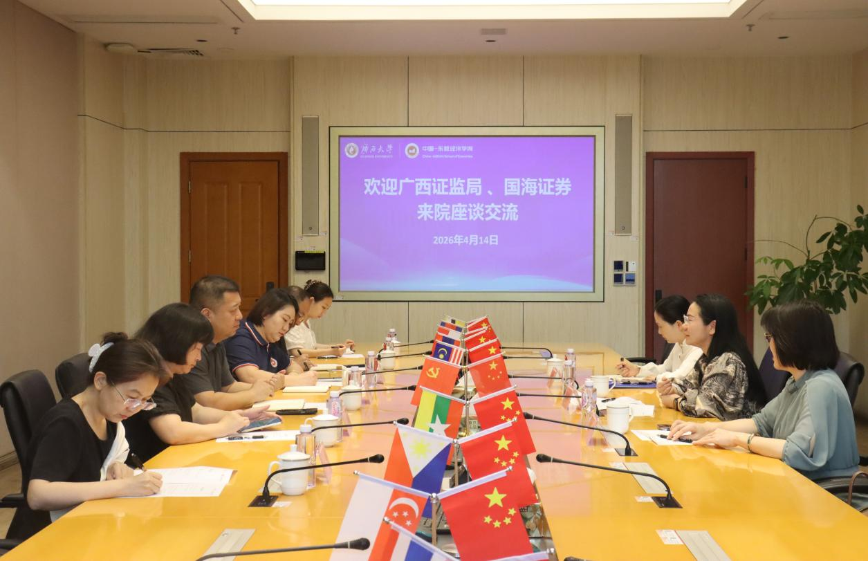 姜玮表示,希望与证券行业及监管部门在党建、学术科研、人才培养、学生实习就业等方面开展务实合作。谭春枝介绍了学院办学特色及服务中国—东盟合作的成效。徐文艳介绍了广西证监局职责,并提出联合深圳证券交易所与学院签署三方框架合作协议的意向。
