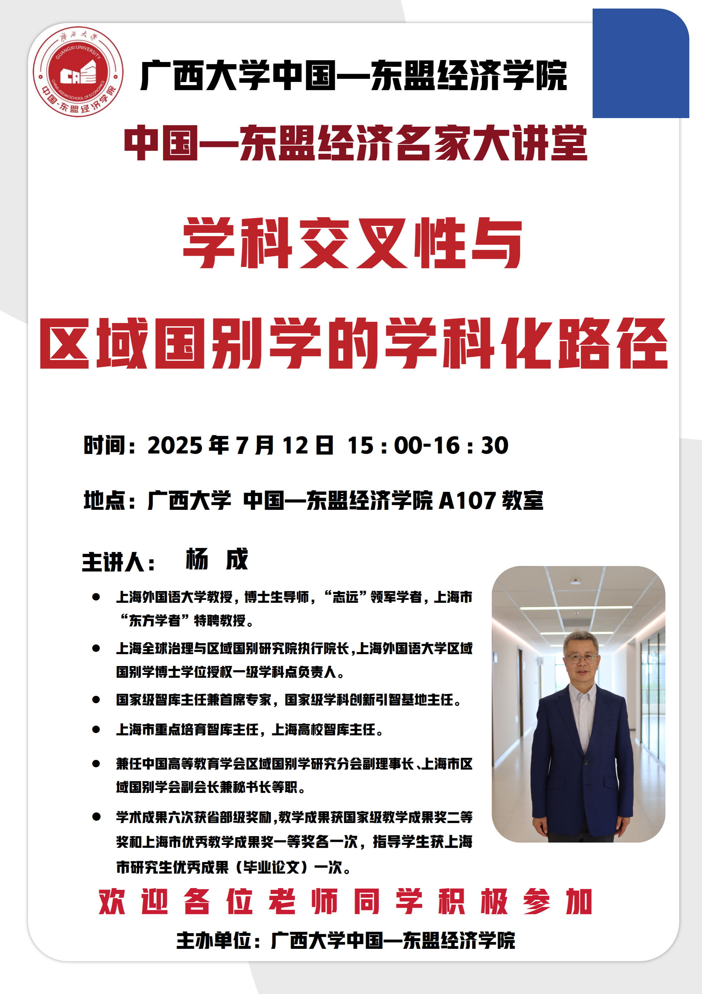 中国—东盟经济名家大讲堂:学科交叉性与区域国别学的学科化路径