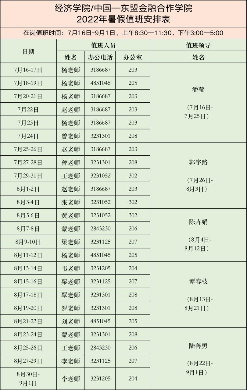 成人漫画 /中国-东盟金融合作学院 2022年暑假值班安排表