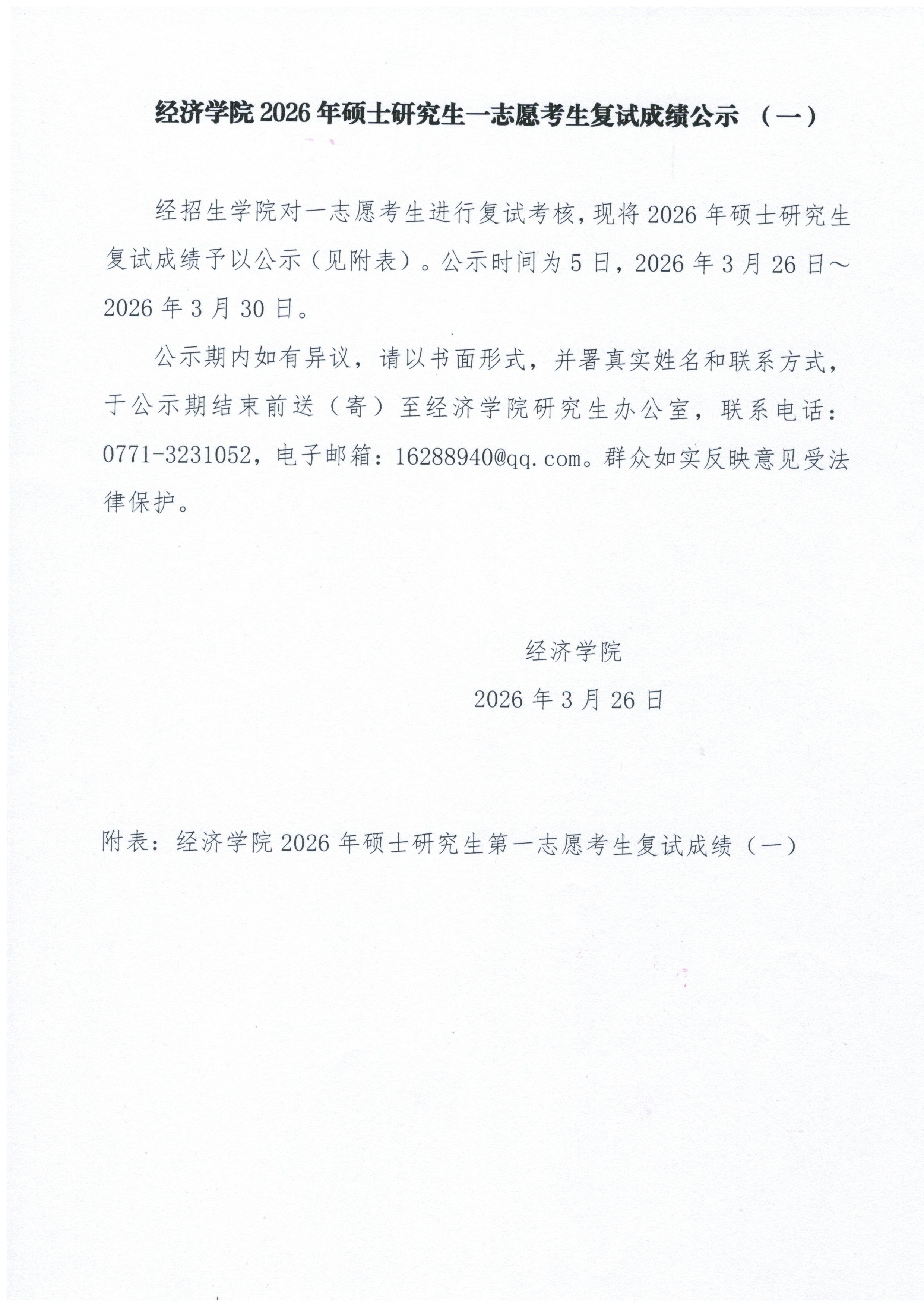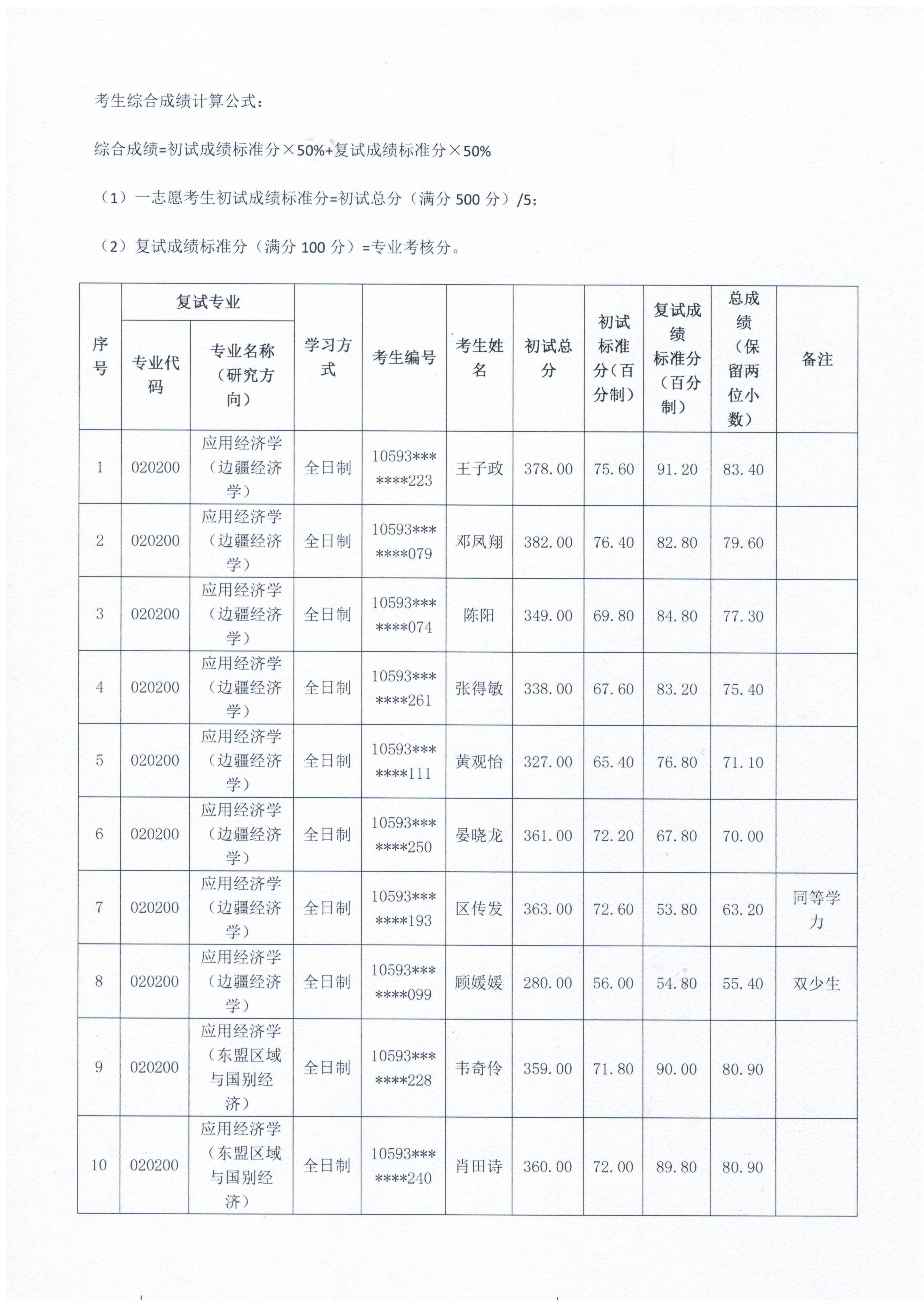 应用经济学专业2026年博士研究生复试成绩公示