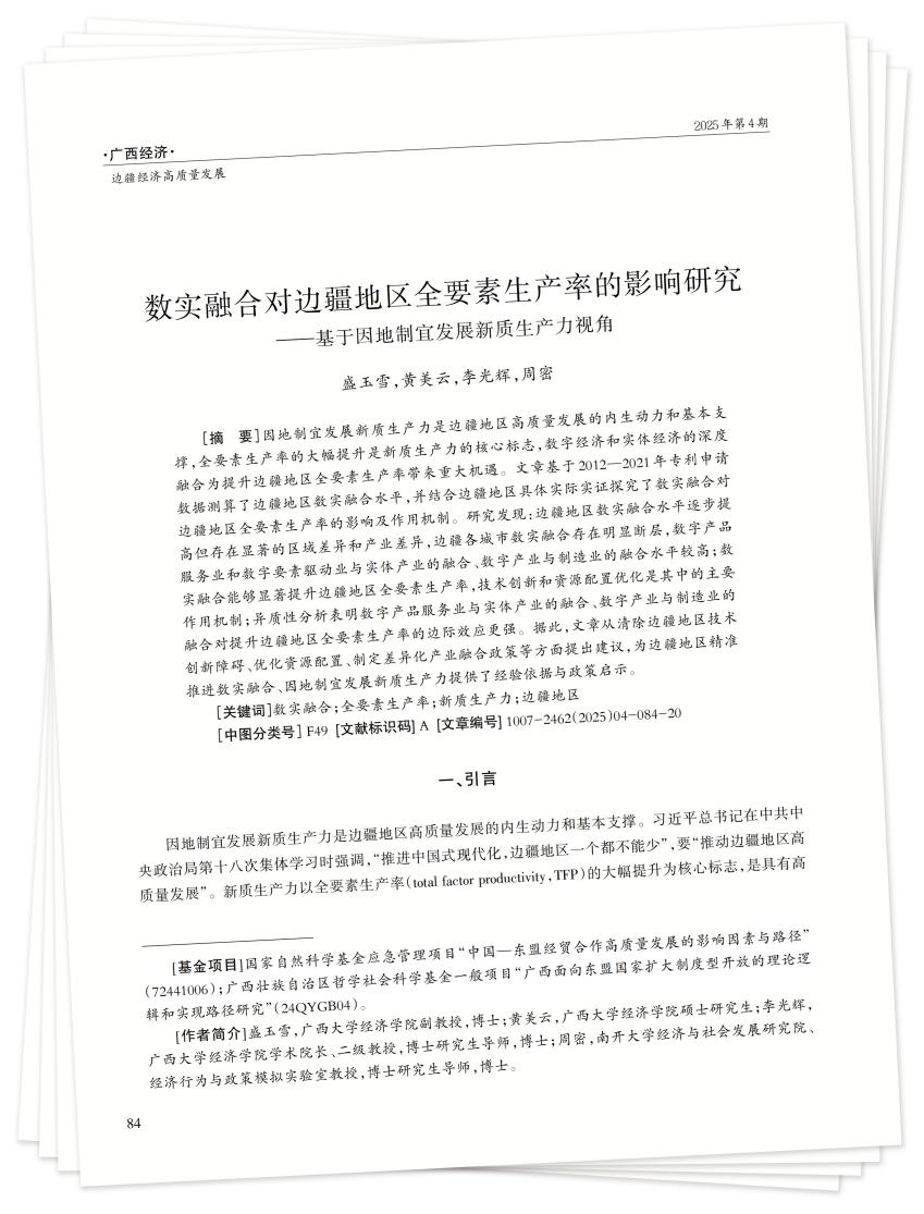 [关键词]数实融合;全要素生产率;新质生产力;边疆地区