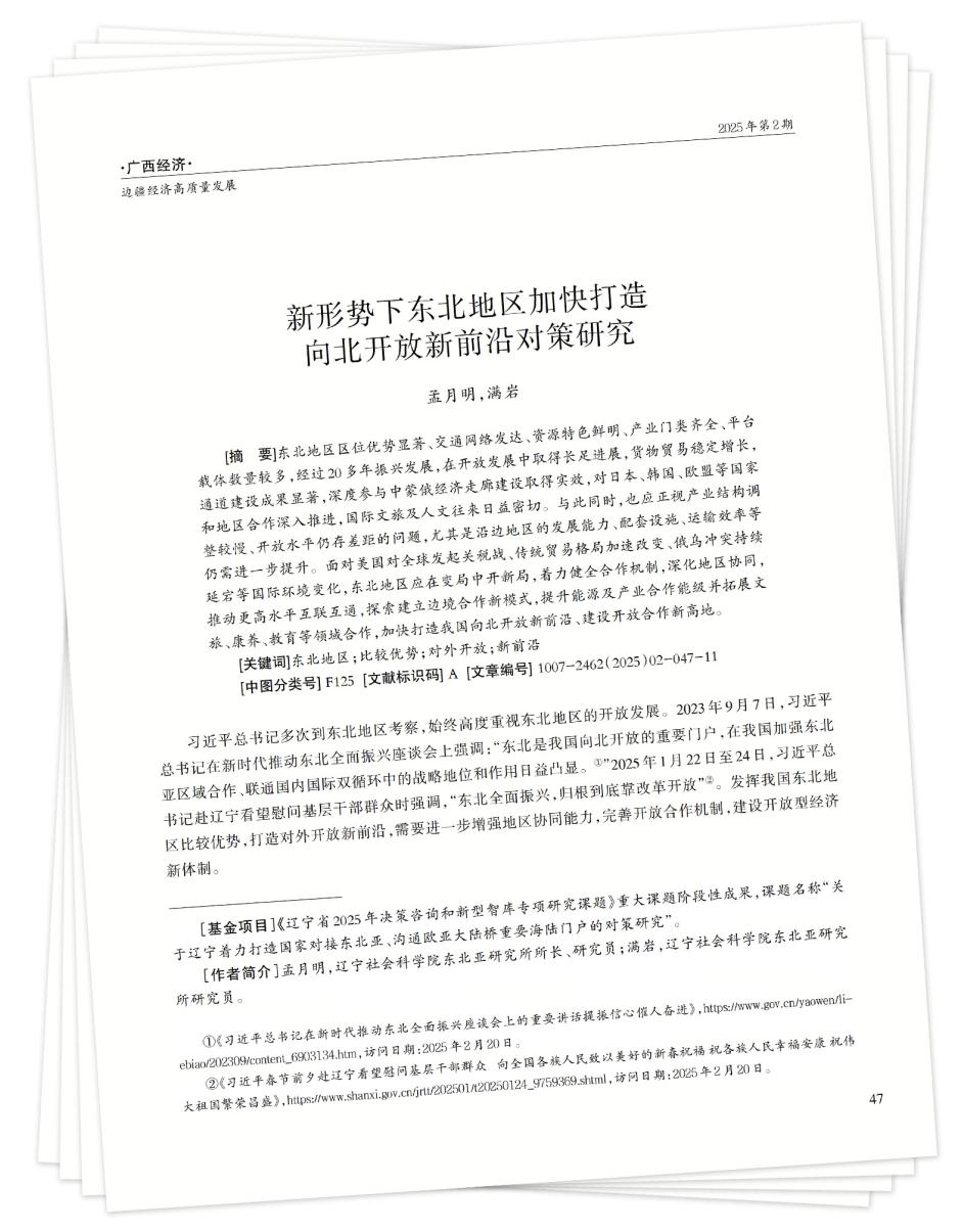 [关键词]东北地区;比较优势;对外开放;新前沿