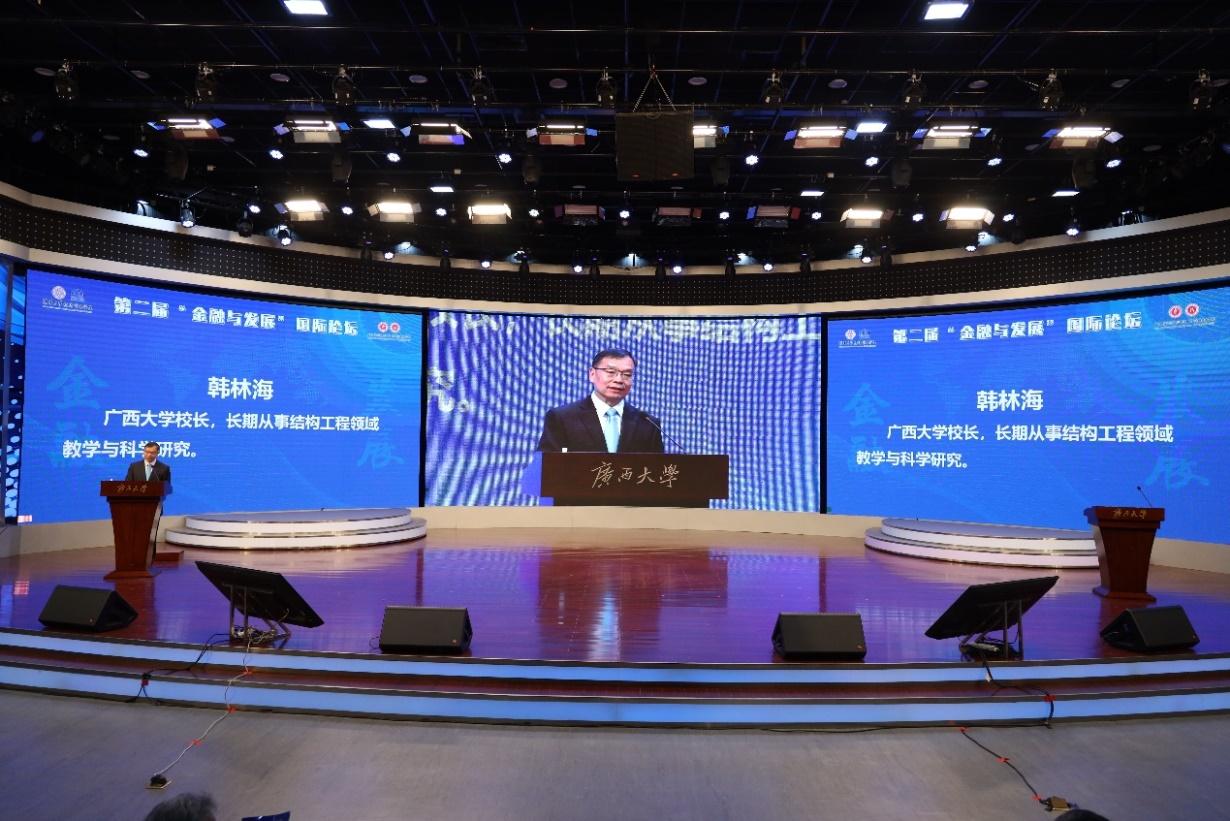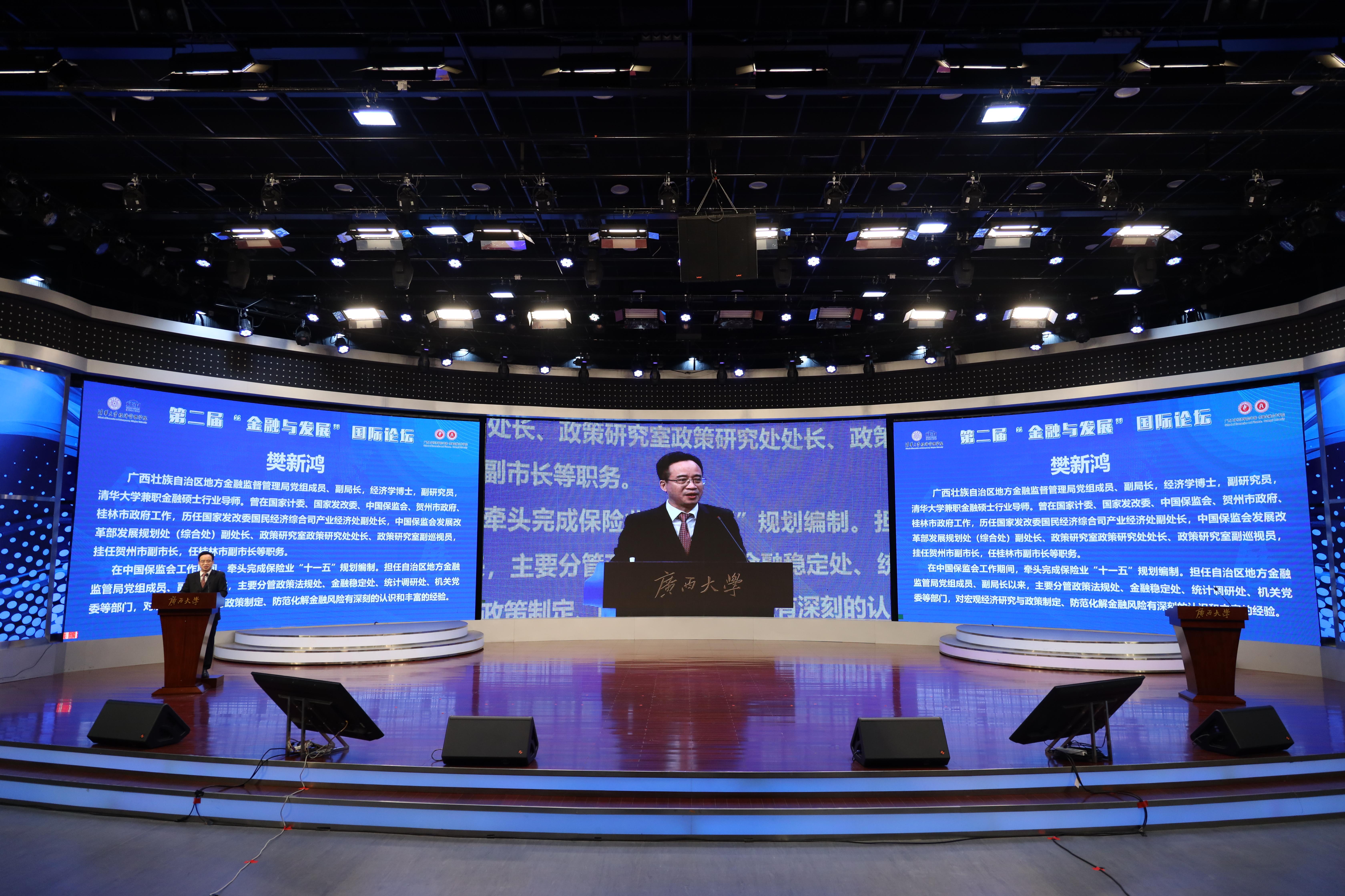 校长韩林海,清华大学副校长杨斌(线上参会),广西壮族自治区地方金融监督管理局副局长樊新鸿出席开幕式并致辞。