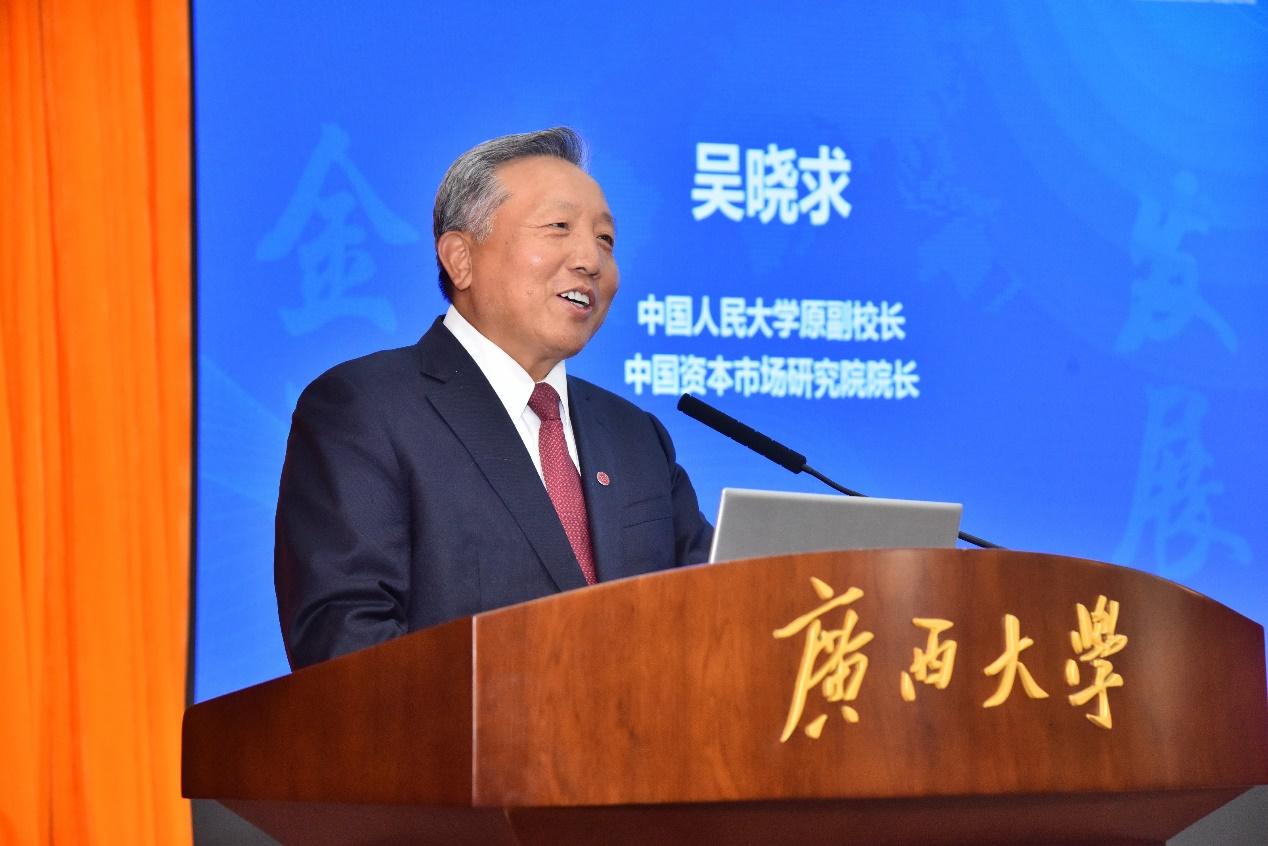副校长田利辉,清华大学经济管理学院院长白重恩(线上参会)分别在开幕式上致辞。中国人民大学原副校长、中国资本市场研究院院长吴晓求发表了题为《尊重人类文明优秀成果是知识创新的起点》的主题演讲,认为在构建中国自主经济学和金融学的知识体系的时候需要高度关注以下三点:一是要对学科有敬畏之心;二是要注意对常识的尊重;三是对趋势的顺应。